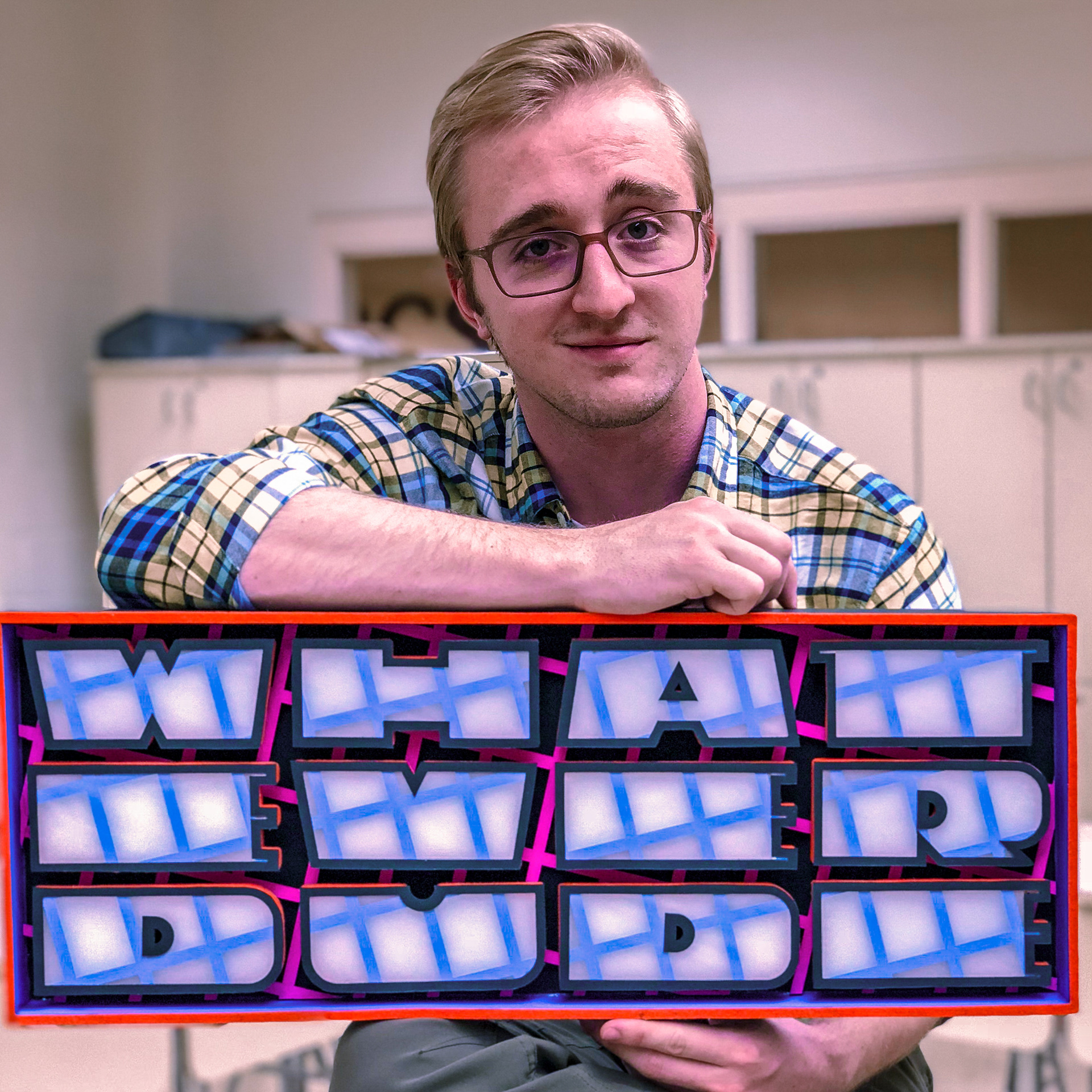 This sign is based on a color palette and design style called Outrun. Outrun is dominated by stark colors like orange, cyan, magenta, and flat black. Common design elements include odd geometry, and grids. I created the letter forms with a focus on them being shapes rather than letters and was not concerned with legibility.
